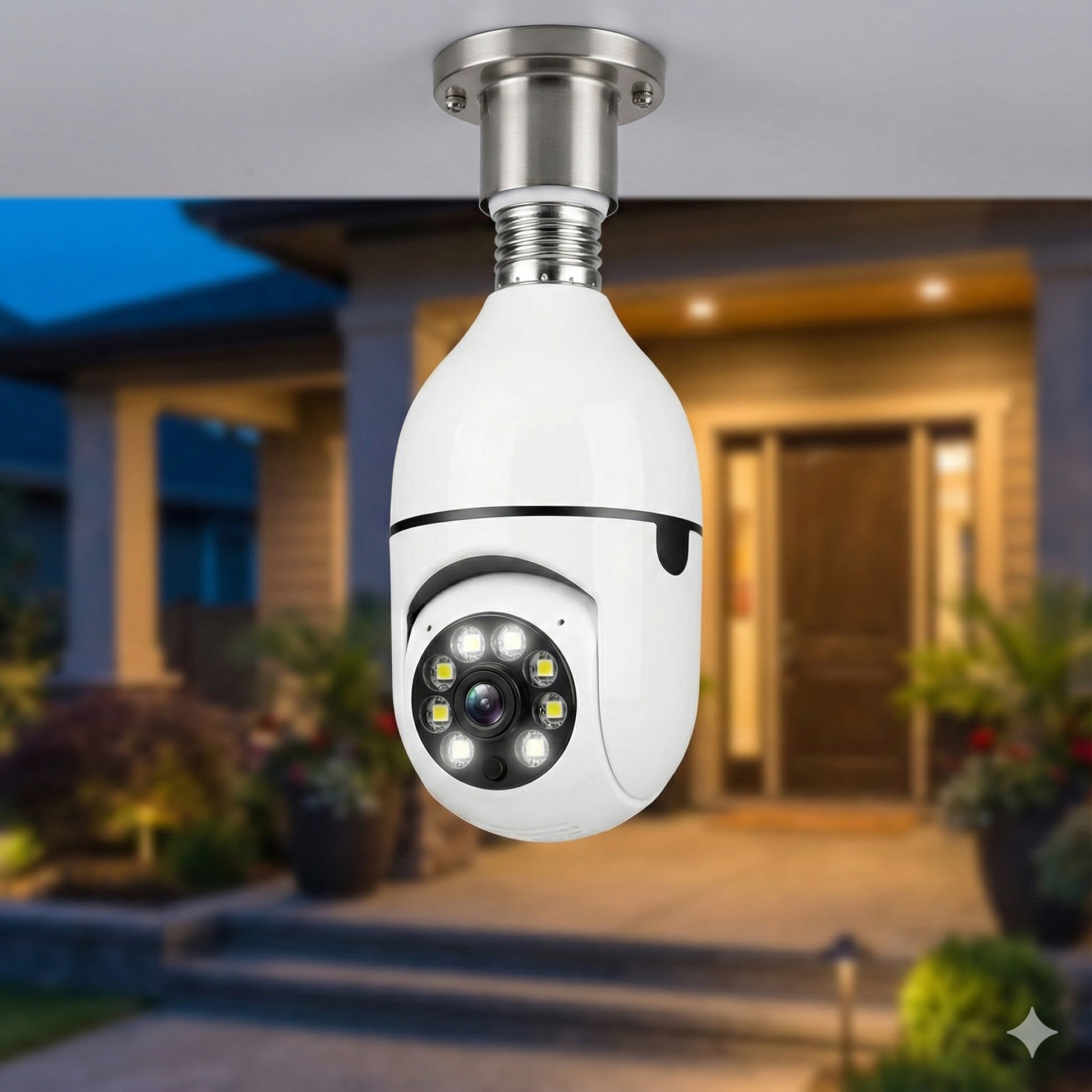 Protege tu hogar de la forma más sencilla e ingeniosa posible. Te presentamos la Cámara Bombillo 360°, la solución de seguridad que elimina por completo las complicaciones de instalación: no usa cables, no requiere taladros y no necesita técnicos. Simplemente enróscala en cualquier socket de luz estándar (E27) como si fuera una bombilla normal y tendrás vigilancia activa en cuestión de minutos.