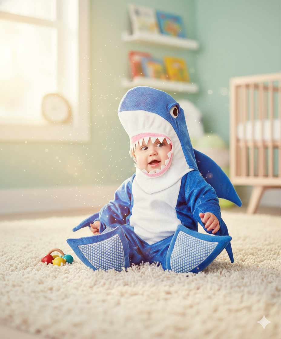 Ya sea un feroz pero tierno Tiburón, un mágico Dragón, o el elegante Conde Drácula, tenemos el atuendo ideal para su primer Halloween, sesiones de fotos o cualquier día de juego.