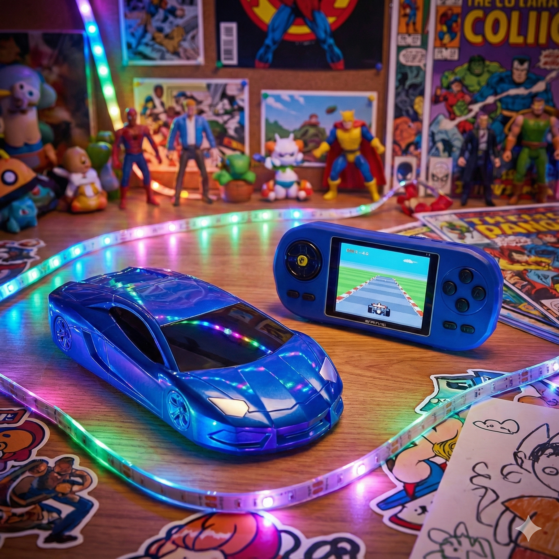 Arranca los motores de la diversión! Esta no es solo una consola, es el juguete definitivo para los pequeños amantes de la velocidad y los videojuegos. Te presentamos la Consola Retro Modelo F3C, con un espectacular diseño de auto deportivo azul que esconde un mundo de entretenimiento clásico en su interior. Es el regalo que combina lo mejor de dos mundos: coches y juegos.