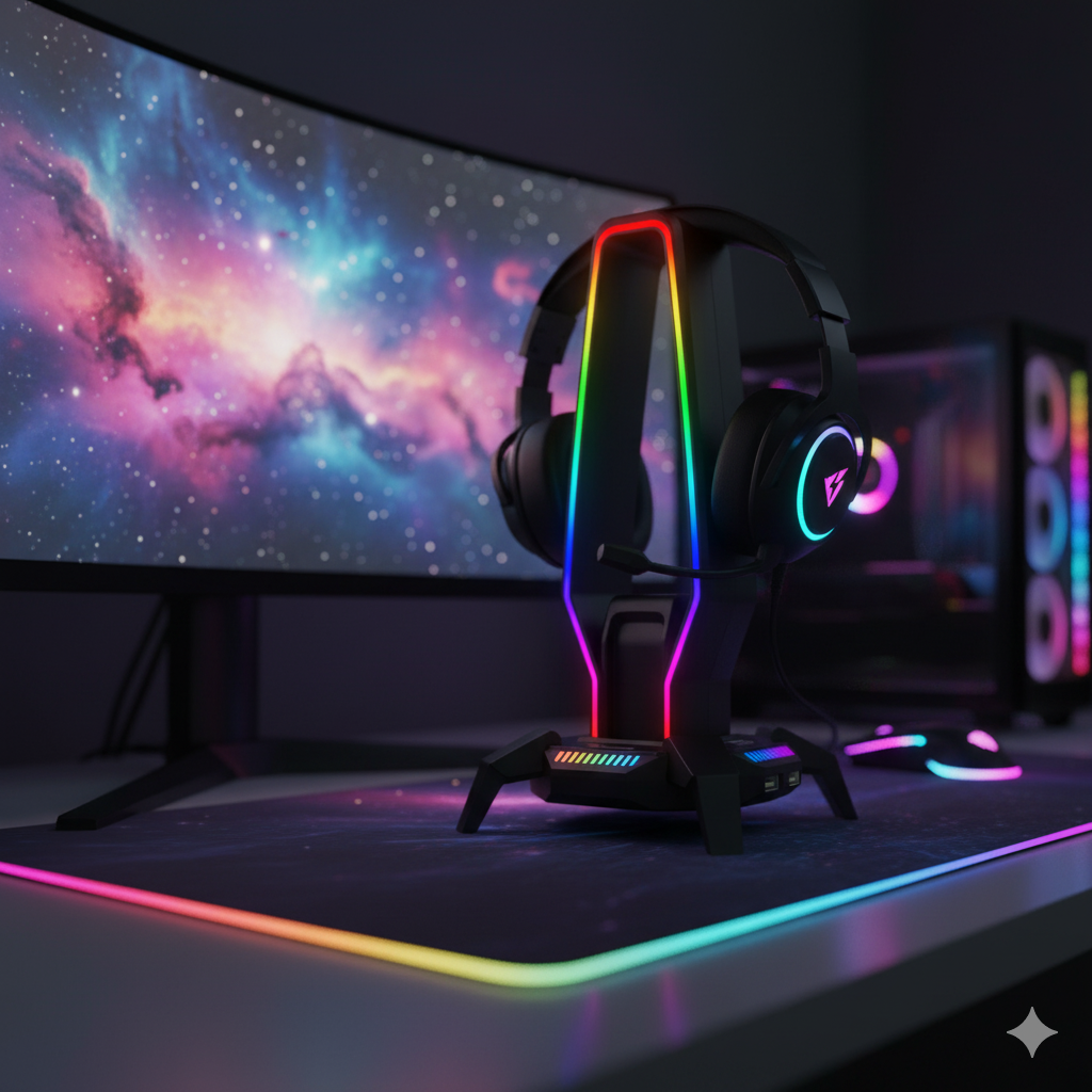 El Estante Exhibidor para Audífonos Marvo HZ-10 es el complemento perfecto para cualquier setup de gaming que busque un toque de estilo y organización. Este soporte cuenta con una impresionante iluminación RGB personalizable que crea un ambiente dinámico e inmersivo. Su diseño no solo exhibe tus audífonos de forma segura, sino que también sirve como una estación de conexión con múltiples puertos USB y una salida de audio integrada.